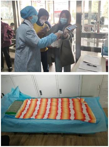 郭丹老师是我院众多预检分诊“守门人”中普通而平凡的一员。疫情初期,在得知医院预检分诊人员紧缺的时候她主动报名作为志愿者加入了预检分诊组。预检分诊需要提前到岗,因为家住东河离单位较远,那时公交也因疫情暂停运营,为了不耽误工作,郭丹老师从支援的第一天起就选择吃住在医院。餐馆关闭,没有外卖,她就吃同事带来的饭菜,要不就是面包、方便面凑合一口,晚上累了就在办公室支起一张行军床和衣而睡,这一坚持就是两个月。虽说是已到了快退休的年龄,平时身体也不太好,但是她没有一句怨言,没有向医院提起过自己的困难,每天带着熬好的中药和其他年轻人一样始终坚守着自己的岗位。她说:“以前对预检分诊工作没有过多的了解,加入这支队伍以后,我才知道她们太不容易了,她们当中很多都是年轻人,岁数不大,家里的孩子也都小,有的还在哺乳期,可是疫情来了,谁都没有退缩,谁都没有掉队,各自克服困难,坚守岗位。”