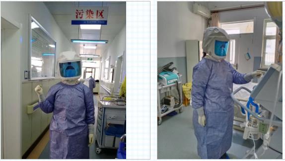 回到工作岗位,看到同事们忙碌的身影和空气中充斥着紧张的战“疫”氛围,说实话我的内心还是有些胆怯的。但是作为一名医务工作者,我深知在危难时刻勇往直前是我义不容辞的责任,我必须坚强起来,去帮助那些需要我的人。经过反复严格的培训,作为医院第二批新冠肺炎重症患者救治组成员的我踏入了感染疾病科隔离病房。