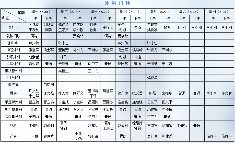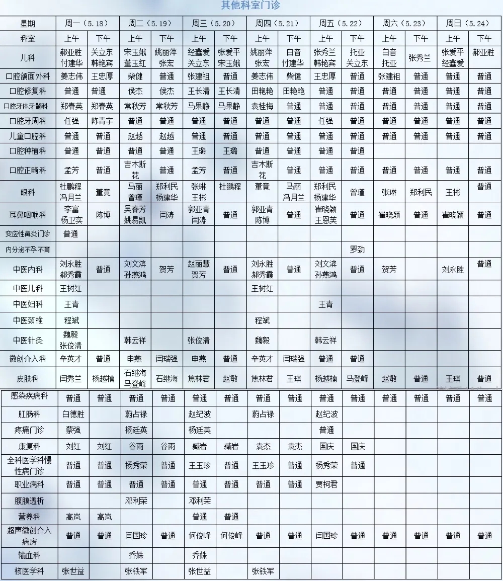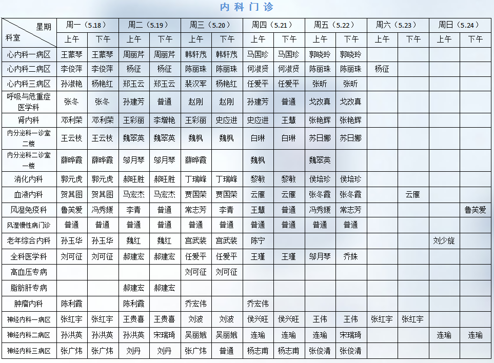 【便民服务】包头医学院第一附属医院2020年五月第三周门诊排班表,请查收!
