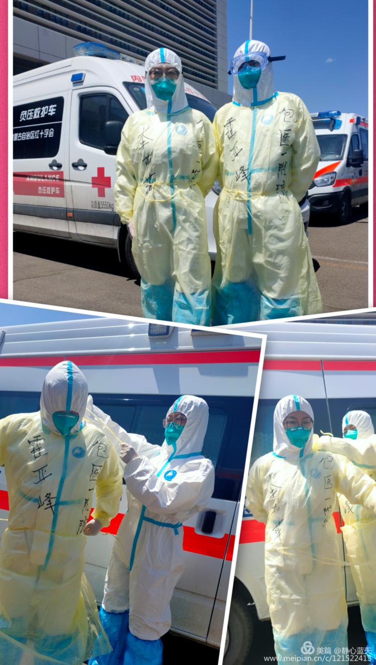 由于回国旅客较多,筛查转运任务重,包头市作为呼和浩特市的兄弟城市在第一时间派出了分别由包头医学院第一附属医院、包头市中心医院、包头市第三医院医护人员和负压救护车司机组成的转运小组。我和霍亚峰于2020年4月30日光荣地加入这支战队。由于时间紧任务重,经过一天的紧急培训,我们第二天正式开始承担转运任务。从那一刻开始,我们每个人都绷紧了神经,24小时待命,因为随时都会有任务,而且每一次执行任务都充斥着危险,旅客都是从疫情严重的国家回来,所以我们必须格外小心。任务不分昼夜,只要接到指挥中心指令,我们就会立刻动身,刻不容缓,接机任务是重中之重,我们必须赶在飞机降落之前到达机场,务必做到我们等待旅客,而不让旅客等我们。每当执行完任务回到驻地,有时是天空银河褪去晓星沉没,有时是晚霞消退暮色苍茫,我们的工作虽然夜以继日,但大家依然精神饱满,斗志昂扬!