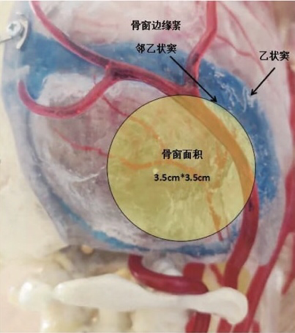“近日,我们组接诊了一例听神经鞘瘤的患者,肿瘤位于桥小脑角区,直径接近4.0CM,该位置区域密布重要神经、血管,手术必须经乙状窦后人路来完成。”张震军介绍,窦是两层硬膜之间的裂隙形成的大的静脉腔,乙状窦就是形似“乙”字样的静脉窦,手术首先就要在乙状窦向横窦移行的拐弯处去掉约3.5CM×3.5CM的骨瓣,即开个小骨窗,骨窗边缘向外、向上应无限接近于这个拐弯处且不撕破窦,这样才能有效暴露桥小脑角区,进而切除肿瘤,但患者已经73岁,年龄太大,硬脑膜和颅骨粘连紧密,几乎融为一体,硬脑膜和颅骨剥离十分困难,一旦不慎撕破窦,就会引起难控性大出血,如果那样,手术可能刚开始就已经失败了。