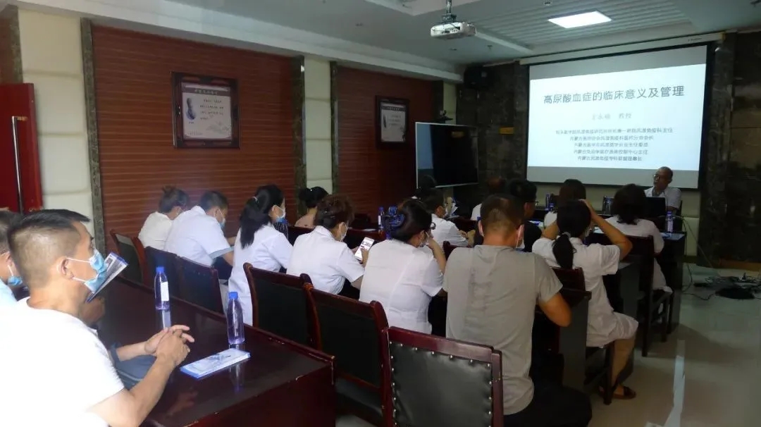 为积极推进基层医院风湿免疫专科建设,持续提升基层医生风湿免疫疾病的诊疗和服务能力,促使优质医疗资源下沉基层,惠及更多风湿免疫疾病患者,8月11日,我院风湿免疫科主任王永福教授、风湿免疫科鲁芙爱、骆康凯、高雅静等医护人员在内蒙古自治区风湿免疫专科联盟主办的高尿酸血症与痛风慢病管理培训中,为九原区蒙医中医医院和乡镇卫生院的医生开展了高尿酸血症的临床意义和痛风的长期管理学术讲座,并为前来咨询的群众提供健康科普、义诊和免费检测血尿酸等服务。