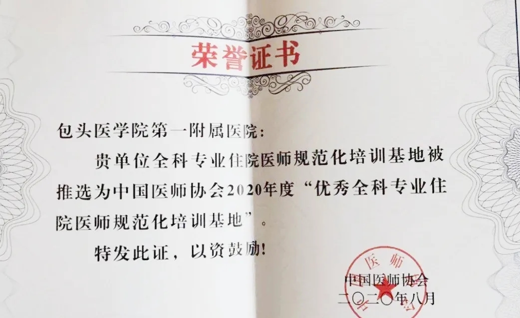 近年来,我院领导高度重视全科医学科建设,不断加大力度推进全科医生培训水平的提高。此次能获全国优秀基地奖项,表明我院全科医学规培基地的学科建设迈上了一个新的台阶。全科医学科也将借助这个机遇,秉承“医教结合、互补专科、延伸基层、服务健康”的学科发展理念,提高全科医生规范化培训教学质量,全力培养优秀的全科医生,促进全科医学发展,为包头及周边地区基层医疗人才队伍建设,为推进分级诊疗和医疗改革工作贡献力量。