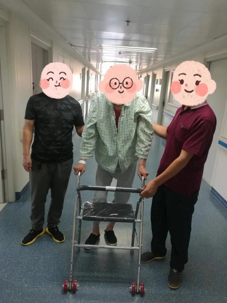 患者杨女士同样在走路时不慎摔倒,当时右髋部疼痛,活动受限,由于老人患有阿尔兹海默症,来到我院关节运动医学科(关节方向)就诊时家属并不对康复抱有希望,只是想保守治疗,给点止痛药,减轻患者疼痛。学科带头人张义君和护士长王培荣多次同家属沟通,最后在家属的同意下成功实施手术治疗,术后第五天患者可在搀扶下行走,对此,家属感到既意外又高兴。
