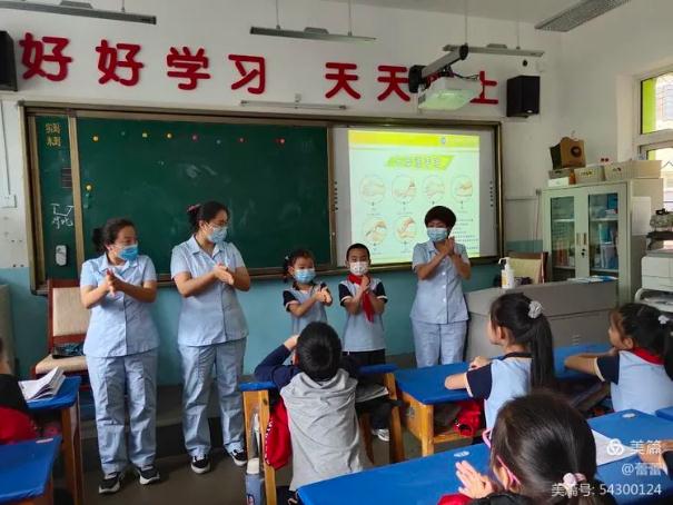 我院护理人员围绕如何洗手,为同学们上了一节生动有趣的科普课,精美的课件、幽默的语言以及耐心的讲解,受到老师和同学们的喜爱与赞扬。在操作实践环节中,护理人员标准示范,手把手耐心指导,同学们积极踊跃参与实践,并且熟练掌握了正确的洗手方法。