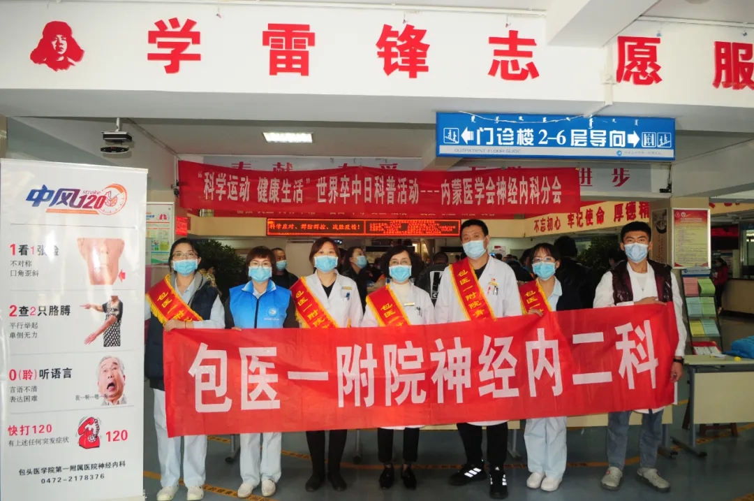 2020年10月29日是第15个“世界卒中日”,为提高居民脑卒中防治知识知晓率和控制率,倡导脑卒中的早防、早诊、早治,降低脑卒中发病率、复发率、致残率及死亡率,切实贯彻落实健康中国行动,向广大人民群众宣传脑卒中防治知识,10月29日,我院神经内科二病区医护人员在门诊大厅开展“科学运动健康生活”世界卒中日科普义诊活动。