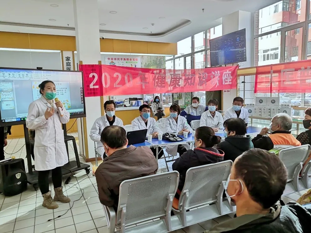 活动现场,包医一附院心内科专家韩轩茂主任以幻灯片的形式为现场的居民详细讲解高血压的诊断标准,高血压“达标、平稳、综合管理”的治疗三原则,高血压的危害及随访管理等知识,同时向现场居民普及高血压慢病“早发现、早诊断、早治疗”三早知识,进一步提高居民们对高血压慢病管理重要性的认识。
