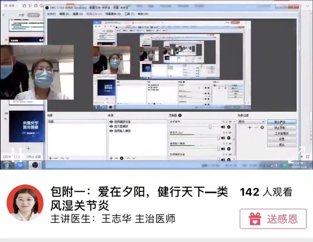 在新冠肺炎疫情常态化防控期间,为普及类风湿关节炎相关疾病知识,提高类风湿患者的生活质量,11月24日,我院风湿免疫科举办了“爱在夕阳,健行天下—类风湿关节炎”大型网络患教会,通过“风湿中心”平台直播为患者答疑解惑。