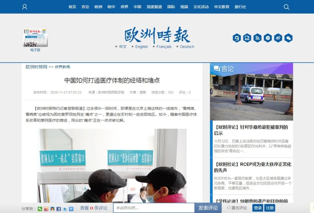 近日,在《欧洲时报》和澳洲网发布的一篇名为《中国如何打通医疗体制自身的“经络”和“堵点”》的文章中详细讲述了我院是如何通过医疗资源下沉来落实医疗扶贫工作,现将原文转载如下。
