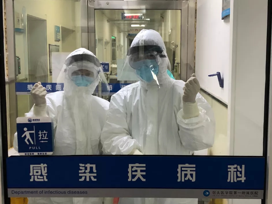 身着厚重防护服,我们认不出门后的你是谁,但我们知道身为医务工作者的你为了谁。谢谢你们,给我们以力量!