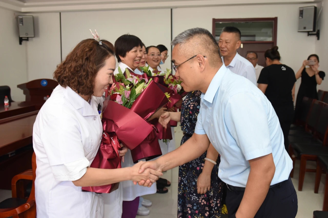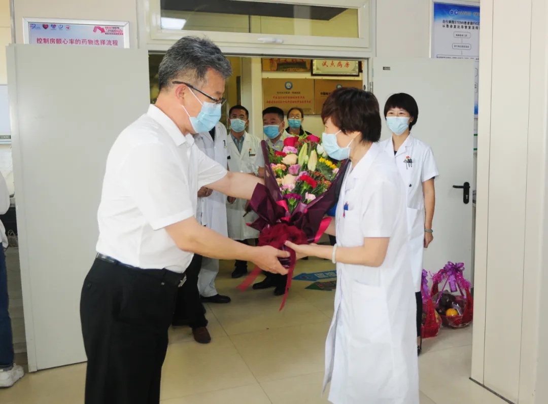 8月19日医师节,我院院长王秋枫带领领导班子成员、各行政职能科室主任为医生送去节日的祝福。