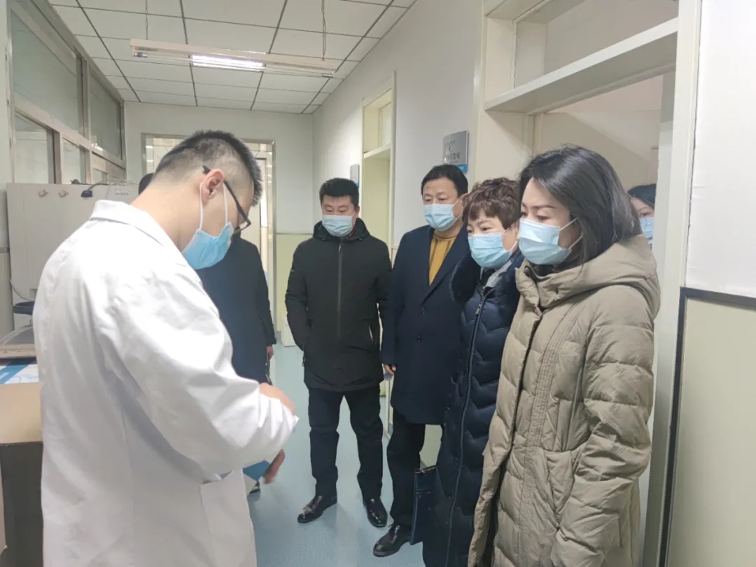王晓菲一行详细查看了我院疫情防控物资储备情况和核酸试剂储备情况,实地走访了医学装备科库房及中心实验室。王晓菲一行对我院疫情防控物资储备工作给予了高度评价,并对我院物资摆放情况提出了合理化建议。