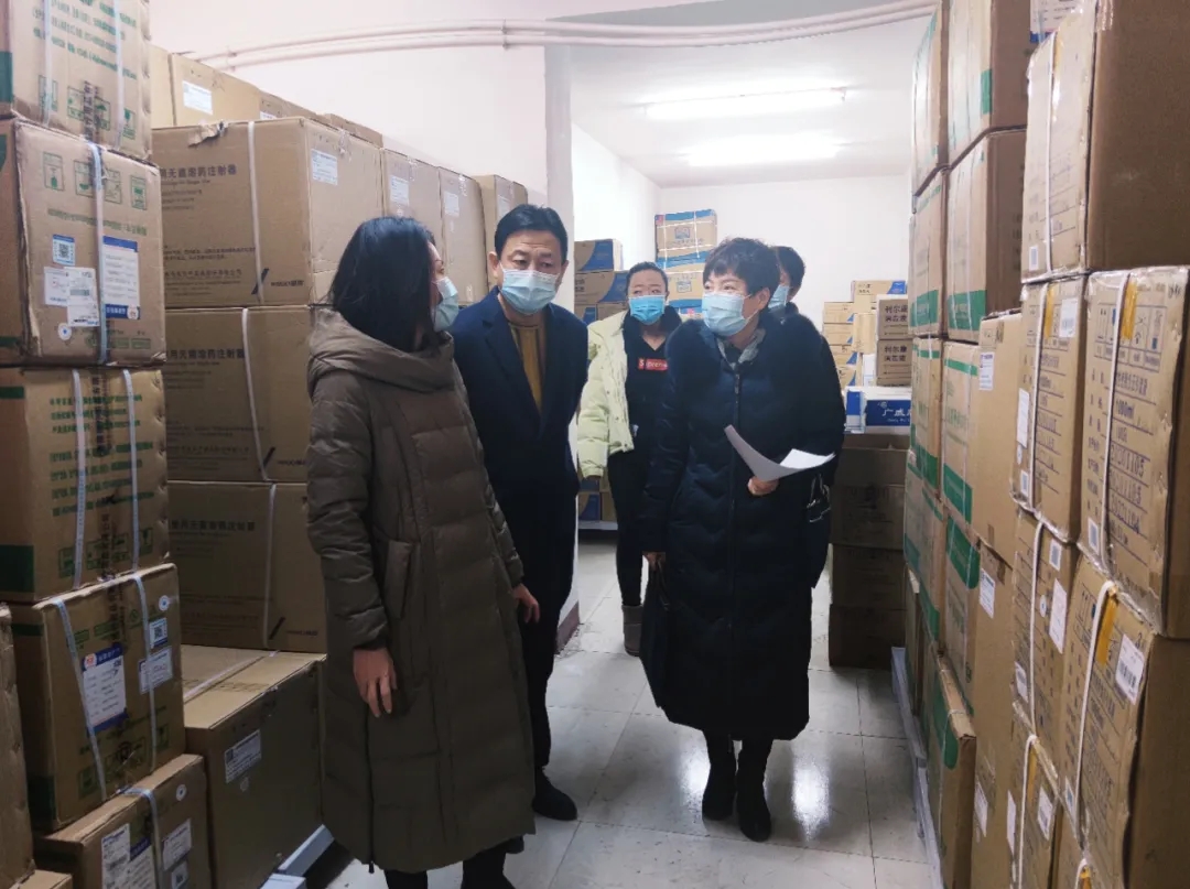 为做好冬春季疫情防控物资储备工作,2月2日,由市卫生健康委四级调研员王晓菲担任组长的市医疗防控组后勤保障小组对我院物资储备情况进行了督导检查。我院党委委员、副院长于跃利,医学装备科科长林丽琼,后勤保障部副主任季鹏陪同督查。