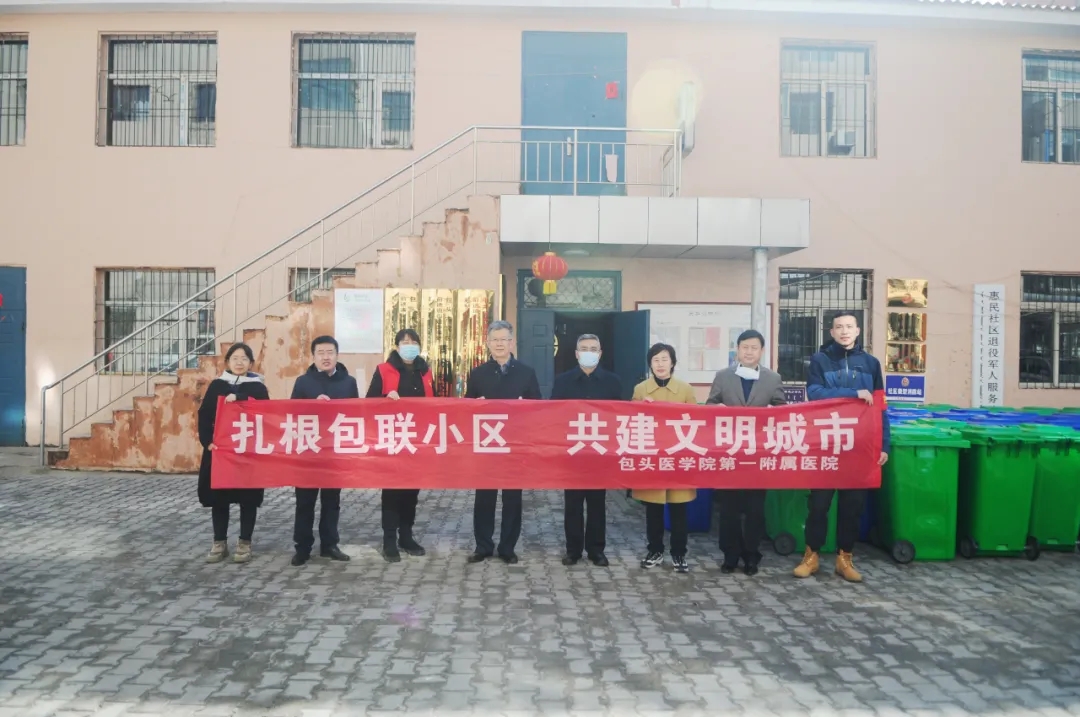 随后,我院党委书记石继海,党委副书记、院长王秋枫,党委委员、副院长于跃利带领创建文明城市办公室、院长办公室、宣传科工作人员来到包联社区-前进街道惠民青16社区,代表医院向社区工作人员捐赠大号垃圾桶50个,这是继我院向惠民社区捐赠城市美化用品、开展志愿服务活动中的又一帮扶举措。