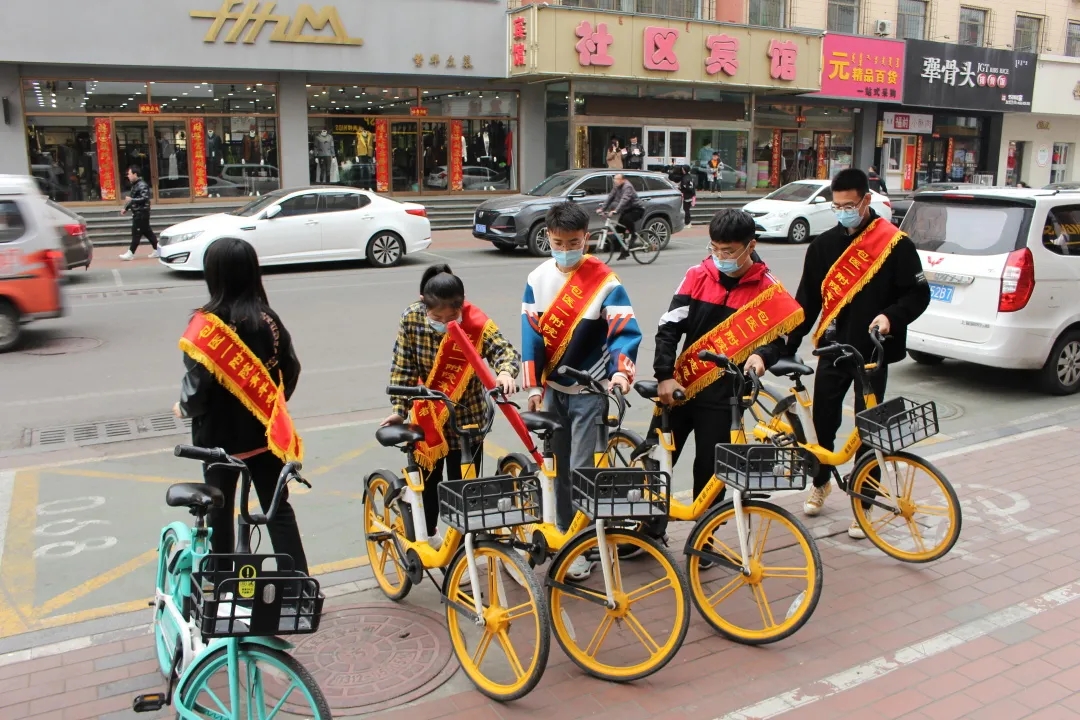 参与活动的所有志愿者们将道路两旁、人行道上随意停放的共享单车推到指定停放点摆放整齐,同时向群众积极宣传文明骑行、有序停放的重要意义,引导骑行者将共享单车摆放到相对集中的停放区域,鼓励大家监督身边存在的不文明行为。在志愿者的努力下,道路干净整洁,共享单车也摆放得井然有序,过往的群众纷纷为志愿者们点赞。