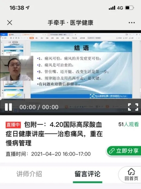 4月20日,风湿免疫科开展线上痛风与高尿酸血症健康教育病友会,并组织线上义诊活动。