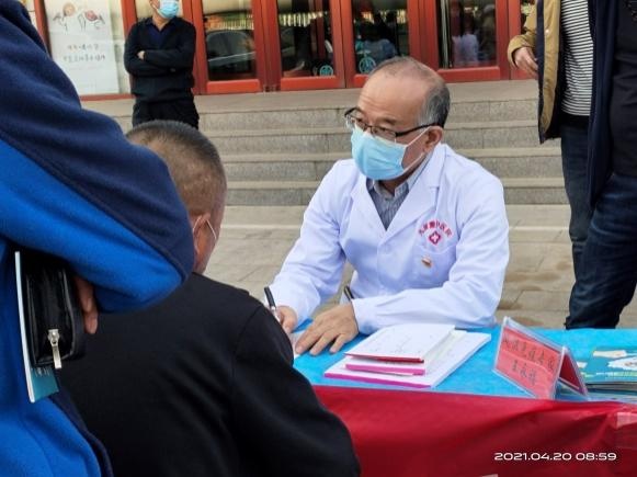 4月20日,王永福教授带领医护人员在九原区蒙医中医医院(内蒙古风湿免疫专科联盟-包头市高尿酸血症与痛风慢病管理培训基地)开展针对痛风患者的义诊活动,为患者进行免费的血尿酸检测。