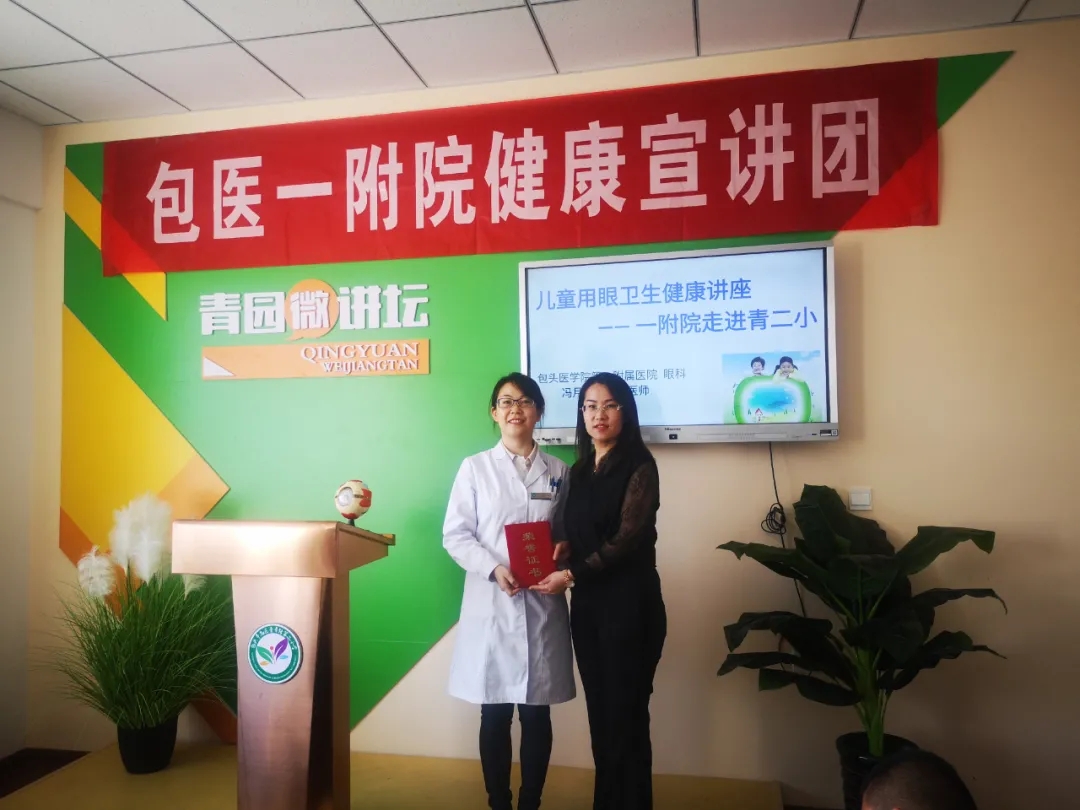 健康科普讲座结束后,青年路第二小学校长为冯月兰医生颁发了荣誉证书,对我院开展此项活动表示了肯定与感谢。学生们纷纷表示,要主动养成爱护眼睛、保护视力的良好习惯,提升自身健康素质,更好地学习掌握更多的科学知识。
