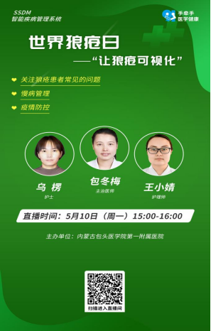 2021年5月10日下午3点,风湿免疫科将开展线上狼疮健康宣教,患者可扫二维码上线听课。