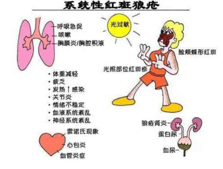 ◆好多人认为系统性红斑狼疮一定有颜面部红斑,其实这是大家的一个误区,部分系统性红斑狼疮患者没有皮肤红斑,而是表现为其他器官或者系统受累的表现,如:发热、乏力、关节疼痛、溶血性贫血、神经系统表现等等。