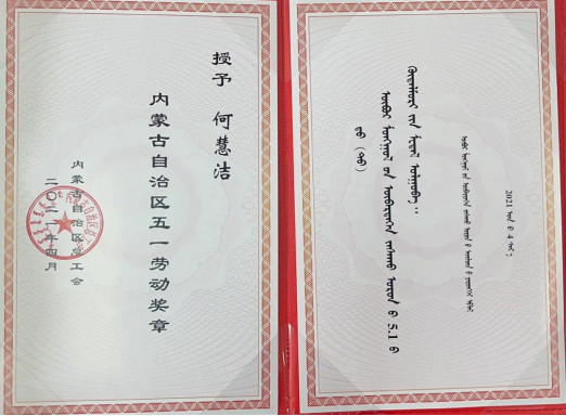 近日,我院呼吸与危重症医学科主任何慧洁荣获由内蒙古自治区总工会授予的“内蒙古自治区五一劳动奖章”。