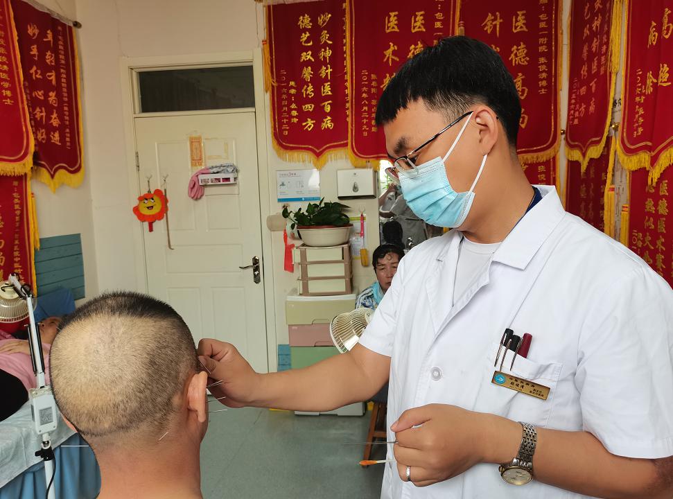中医科主任张俊清为患者把脉、治疗