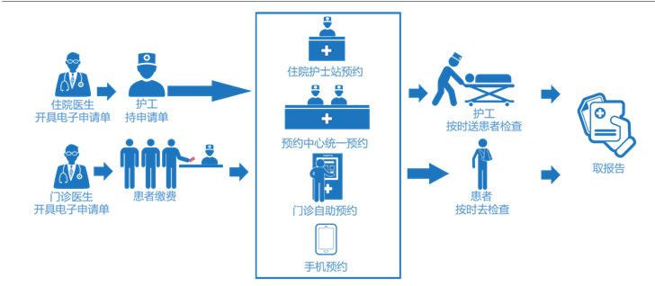 医学影像科主任罗琳最直观的感受是:放在以前,患者需要自己拿着医生开具的检查单先去窗口缴费,再自行到医技科室登记台排队预约检查时间,这就造成了患者需要来回奔波于各检查科室之间,就诊、检查、复诊需要多次往返医院。