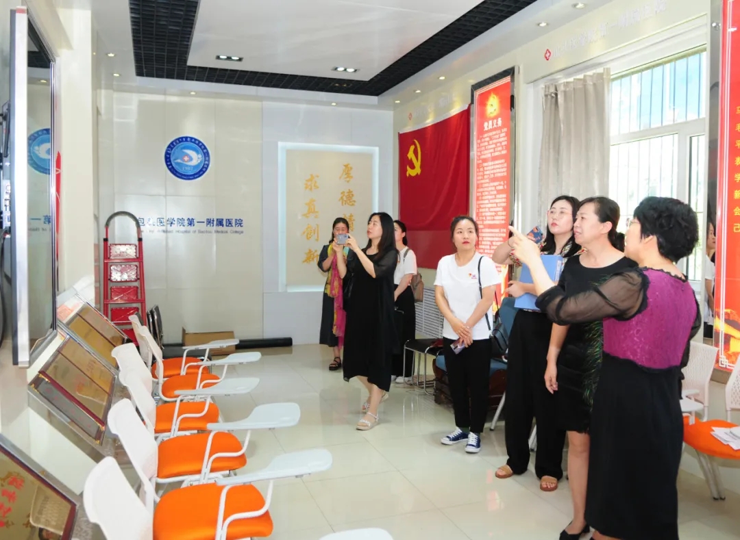 会后,第二附属医院一行8人在我院党委办公室主任苏琴的介绍下实地参观了党员学习室和办公楼走廊,进一步了解了我院党史学习教育阵地建设情况。