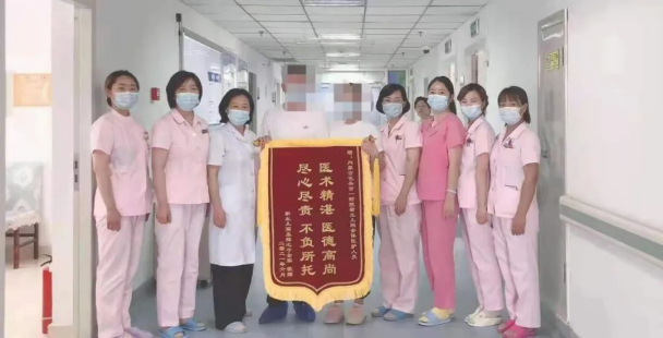 ▲小茂茂的父母为新生儿科医护人员送上锦旗