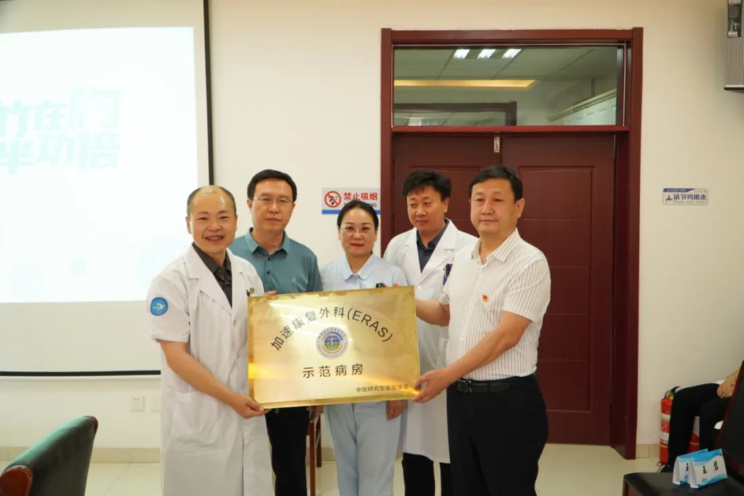 6月18日下午,我院胸外科正式挂牌中国研究型医院学会加速康复外科(ERAS)示范病房。我院党委委员、副院长于跃利,党委委员、医务部主任张震军,胸外科主任燕少伟、副主任刘英及呼吸与危重症医学科、消化内科、急诊医学科、麻醉手术科、病理科、营养科、心理科、介入治疗科等科室主任、副主任及科室医务人员40余人参加了揭牌仪式。