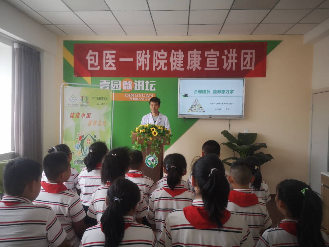 为发挥党员干部帮扶引领作用,结合党史学习教育,切实落实为群众办实事,近日,我院营养科主任陈鹏来到包头市青年路第二小学,为同学们上了一堂主题为“合理膳食,营养惠万家”的生动营养课。