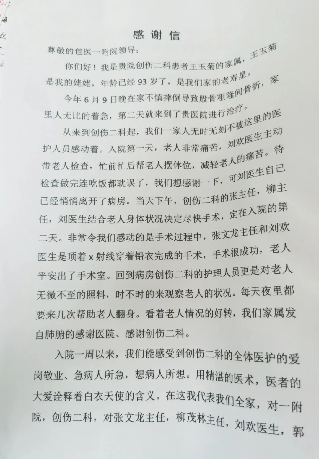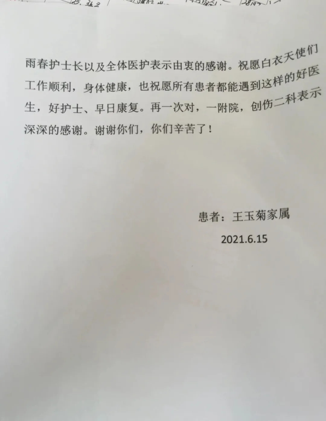 作为一名创伤骨科医生,能深切体会到老年骨折患者的痛苦与无助,此时我们能做的就是在身体和心灵上都给予他们最大的帮助与慰藉,让老年患者能真正体会到关爱与希望。每次看到老年骨折患者康复出院时全家人激动和满意的心情,我觉得再多的付出也是值得的。我们创伤二科会继续努力,帮助更多的患者战胜病痛。