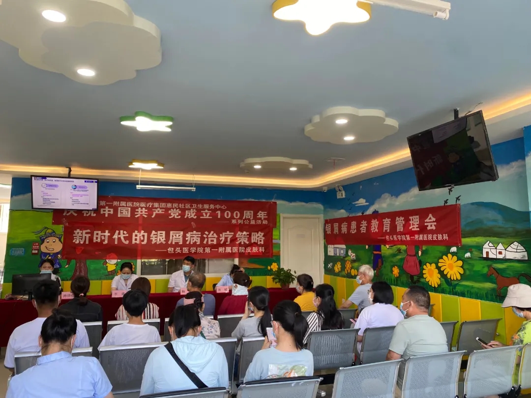 为献礼建党100周年,着力减轻患者痛苦,普及银屑病专业知识,为患者办实事,6月25日下午,我院皮肤性病科在惠民社区卫生服务中心二楼举办以“新时代银屑病的治疗策略”为主题的患教活动。