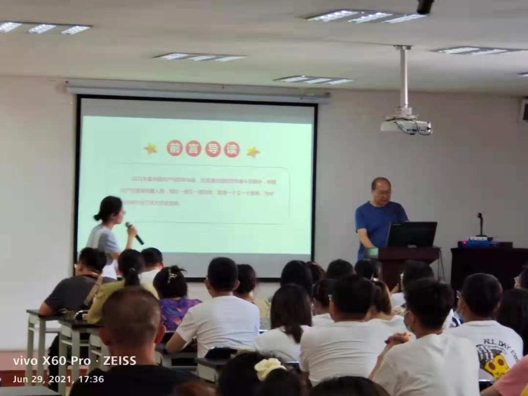 6月30日,党委委员、副院长陈青宇在口腔楼会议室为外科系统党支部的党员们讲授了题为《学党史、悟思想、强基础、提质量》的专题党课,结合工作实际,教育和鼓励广大党员干部职工通过学党史,进一步增强医疗卫生服务的工作能力。