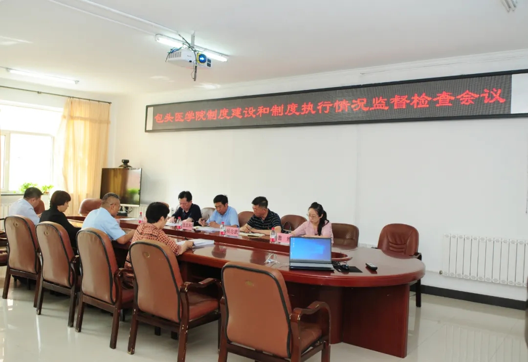 7月2日,包头医学院纪委副书记任忠和同相关处室负责人一行4人就我院制度建设和制度执行情况进行监督检查。我院党委书记石继海,党委委员、副院长张昕及相关行政职能科室主任、负责人参加监督检查座谈会。