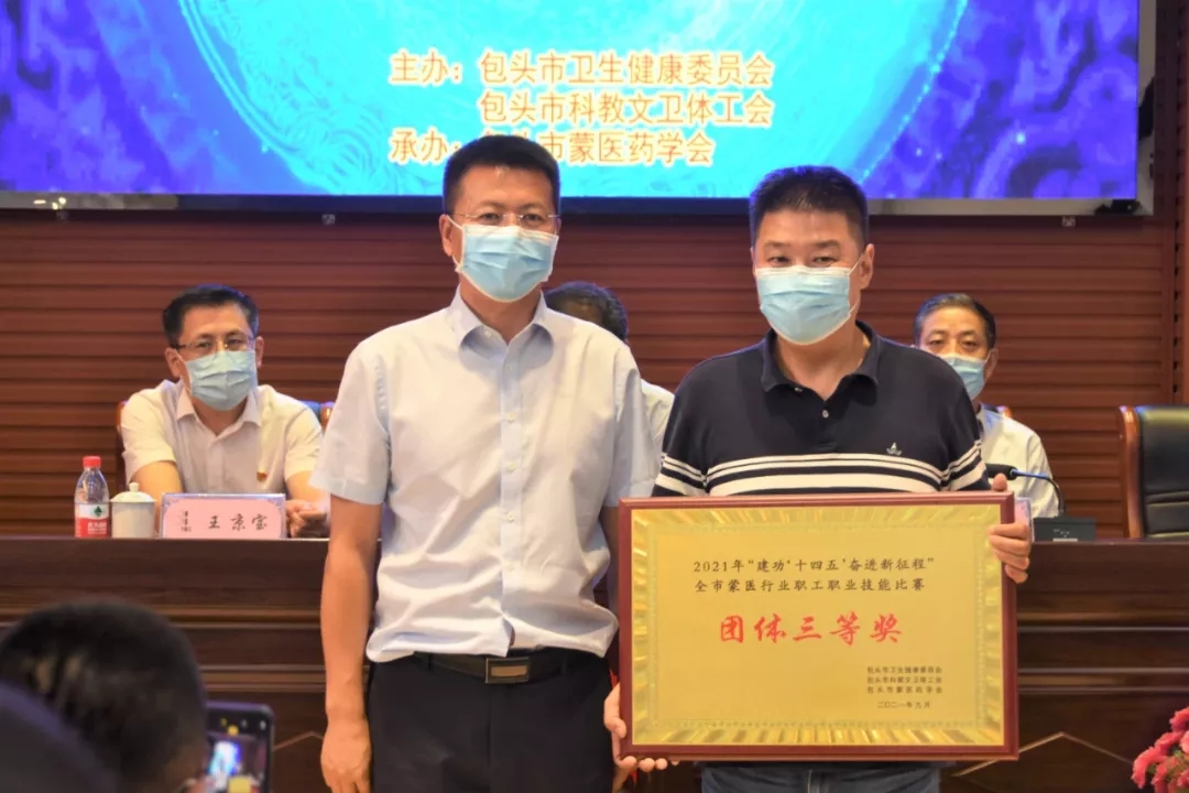 我院荣获团体三等奖。蒙医科主任朝鲁门荣获个人优秀组织奖,蒙医科医生宋美丽荣获蒙医疗术组一等奖,蒙医科护理人员照拉、白牡丹、乌楞荣获蒙医护理组三等奖,苏日古嘎、敖云龙、娜日苏荣获个人优秀奖。