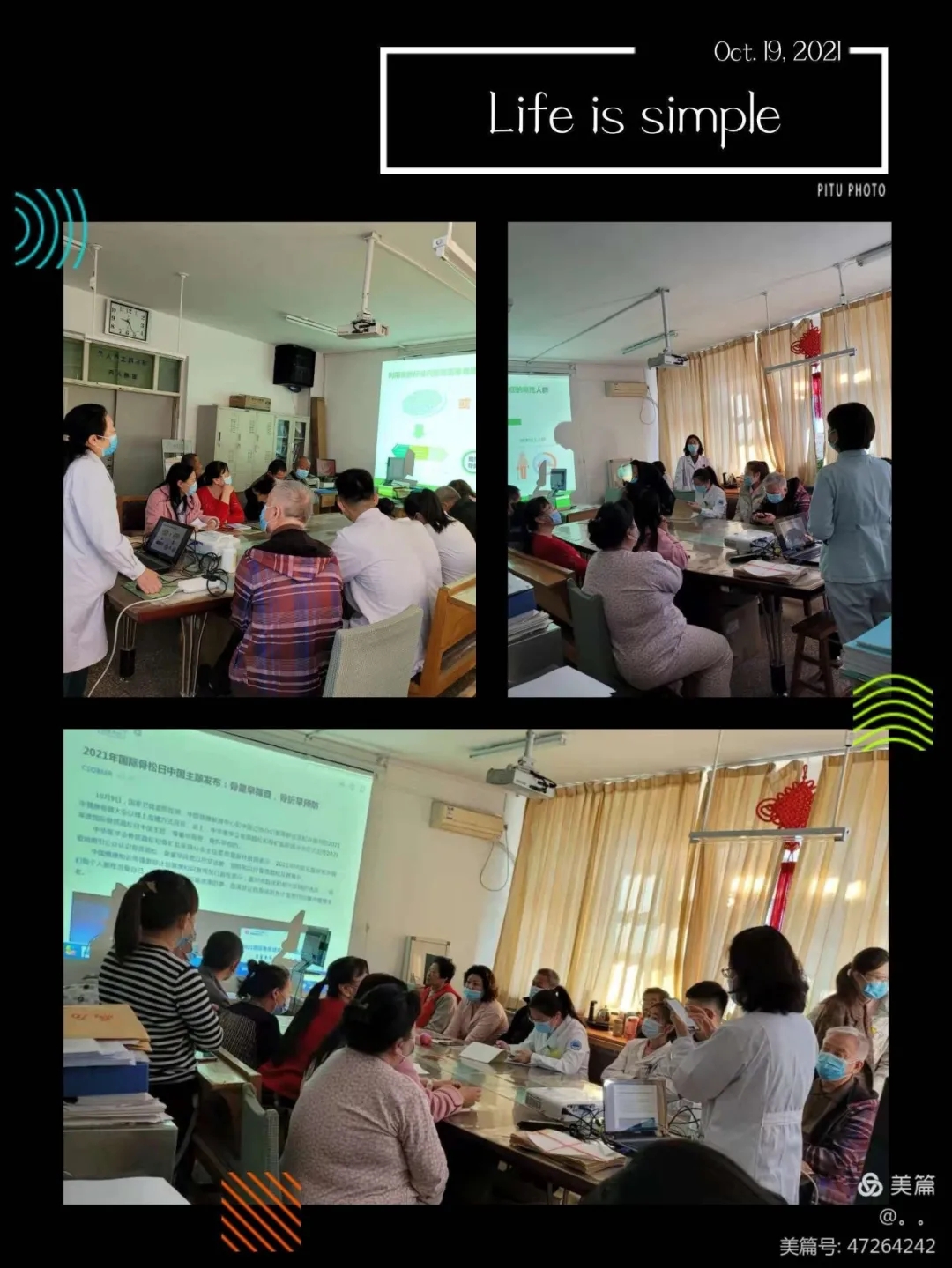 10月19日上午,内分泌科魏枫教授、白琳教授和主任护理师郝二美分别就骨质疏松相关内容在内分泌科示教室为患者开展“骨量早筛查,骨折早预防”“远离骨质疏松防治篇”“走进骨质疏松疾病篇”等主题科普宣教活动,内容生动形象,通俗易懂,受到患者的一致好评!