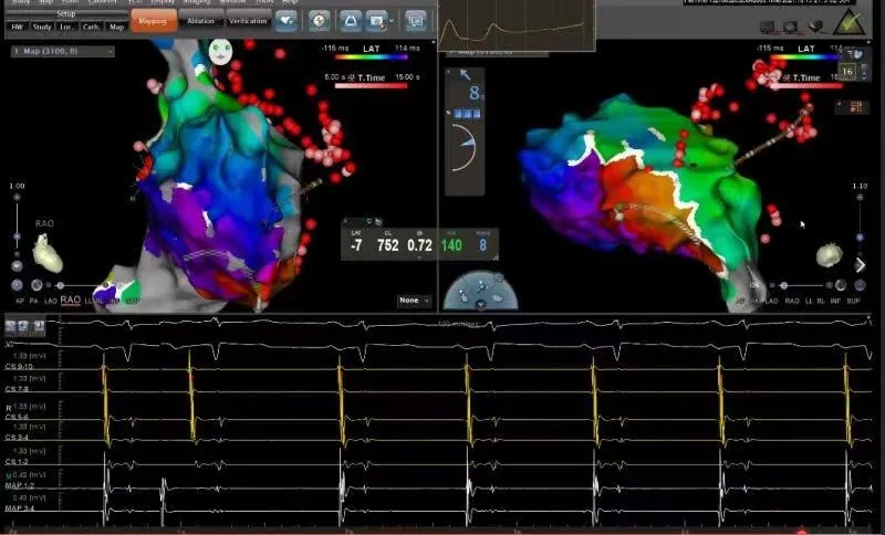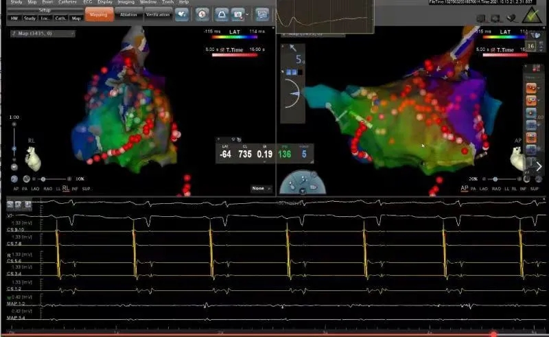 我院新升级的“CARTO系统”具备强大的高精密度标测功能,大大提升复杂心律失常射频消融术中标测的精准性,显著提高手术效率,为复杂心律失常患者的救治创造了条件。