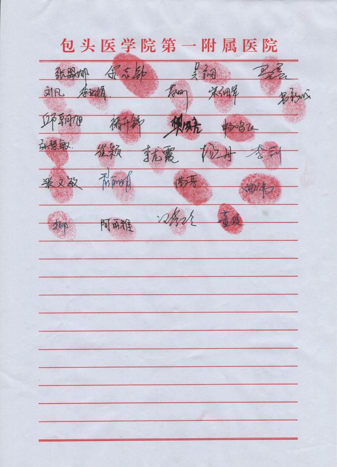 药剂科的职工们纷纷签下自己的名字