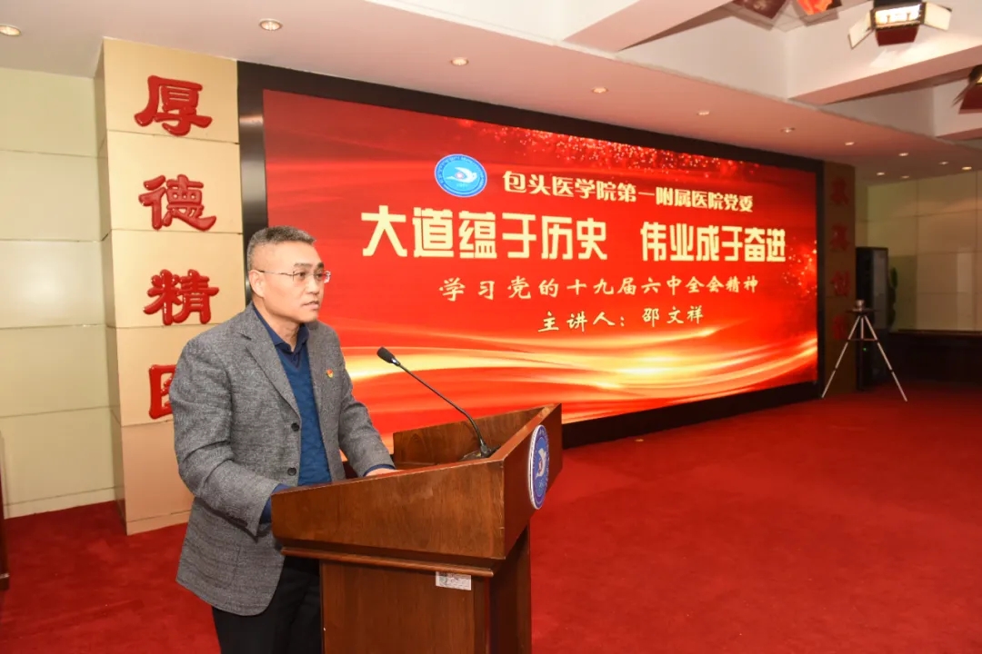 会议邀请包头轻工职业技术学院党委书记邵文祥教授围绕党的十九届六中全会的重大意义、内涵等方面内容进行了深入解读。