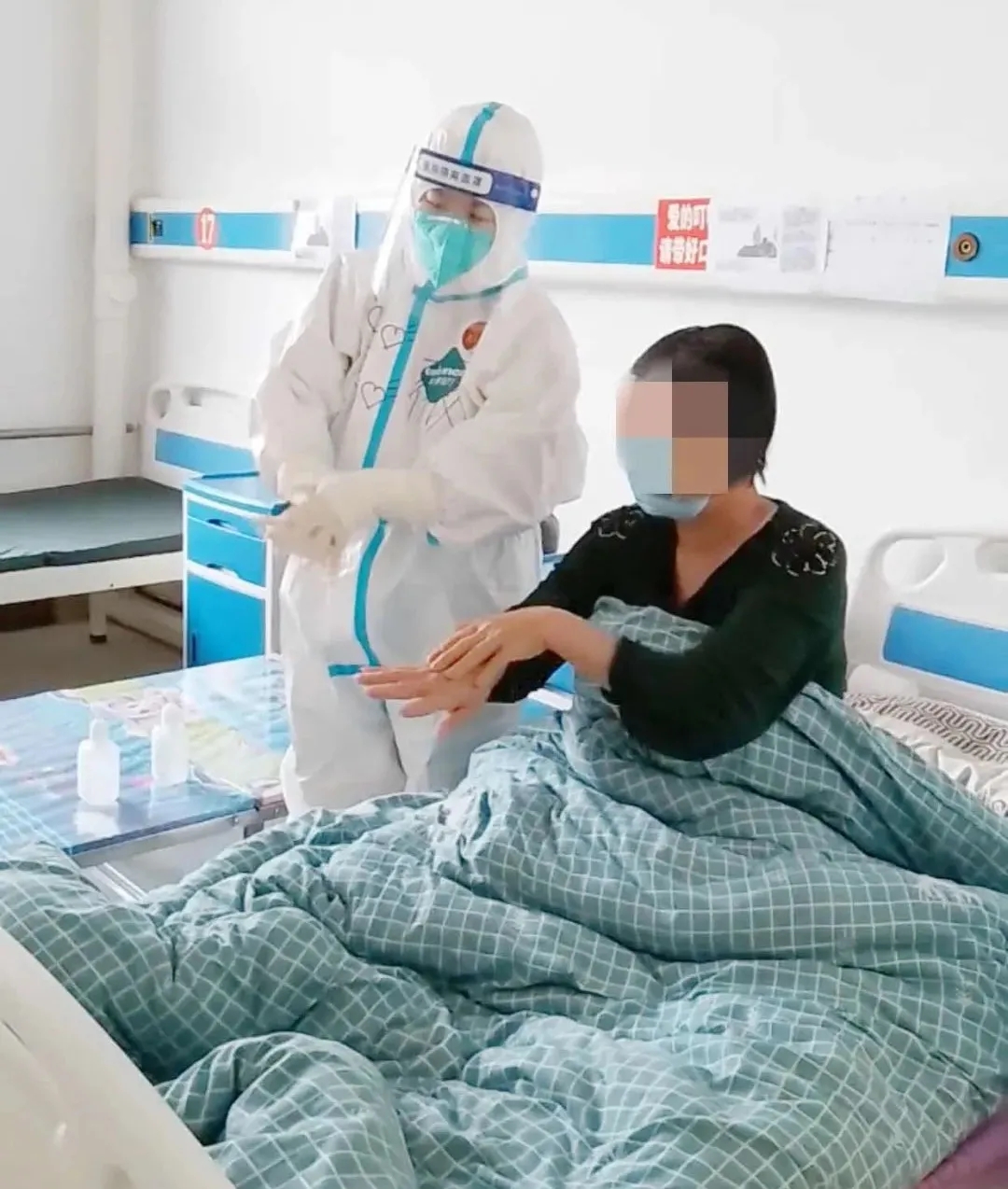在给患者发消毒液的过程中,我提醒患者要做好消毒,及时开窗通风,多锻炼身体增强抵抗力。她笑呵呵的说,“我们每天都拖地好几次,你们放心吧,工作那么辛苦还来督促我们,太感谢了”,我说:“姐,我们一起努力,早点战胜疫情,早点回家”。来自患者的点滴关心,每天都感动着我们...