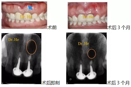 患者术后三个月来复查,瘘管闭合,根尖病变范围明显缩小。