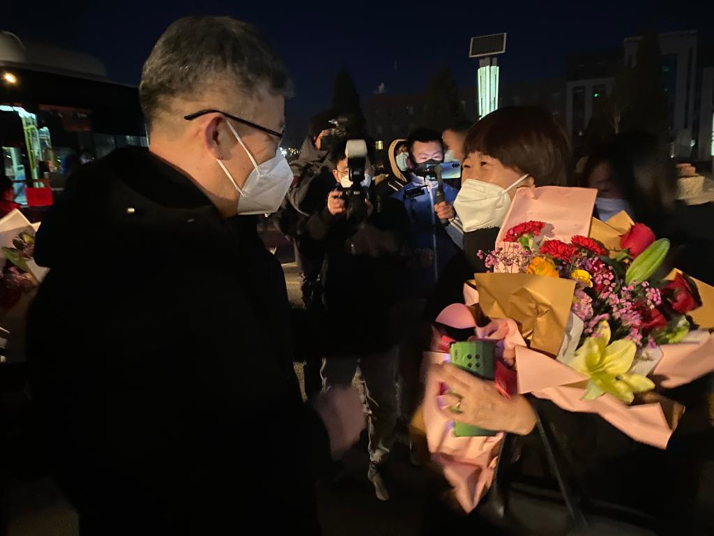 在队员们乘摆渡车到达指定接机地点后,早已等候多时的院领导和同事们为每位队员送上了鲜花,祝贺队员们圆满完成任务平安返包。“辛苦你们,欢迎回家。”院长王秋枫向每位队员表达了谢意。“还是家最好”“终于回我们大包头了”经过近一个月的艰苦鏖战,“回家”的队员们脸上除了洋溢着喜悦,还有自豪。
