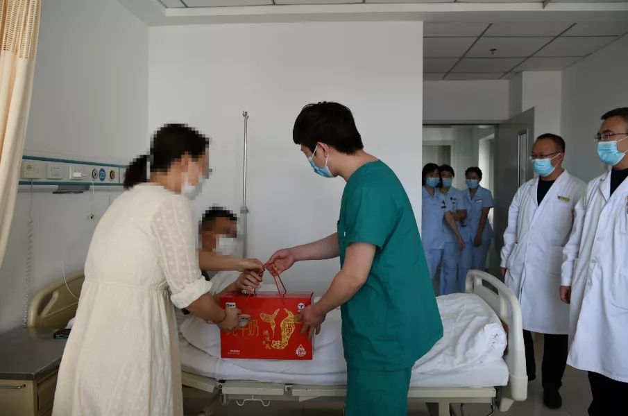 “新年好!祝您早日康复!”一声声暖心的问候,一张张温暖的笑脸通过一份小小的慰问品将肛肠科全体医护人员的温暖送到患者心中。