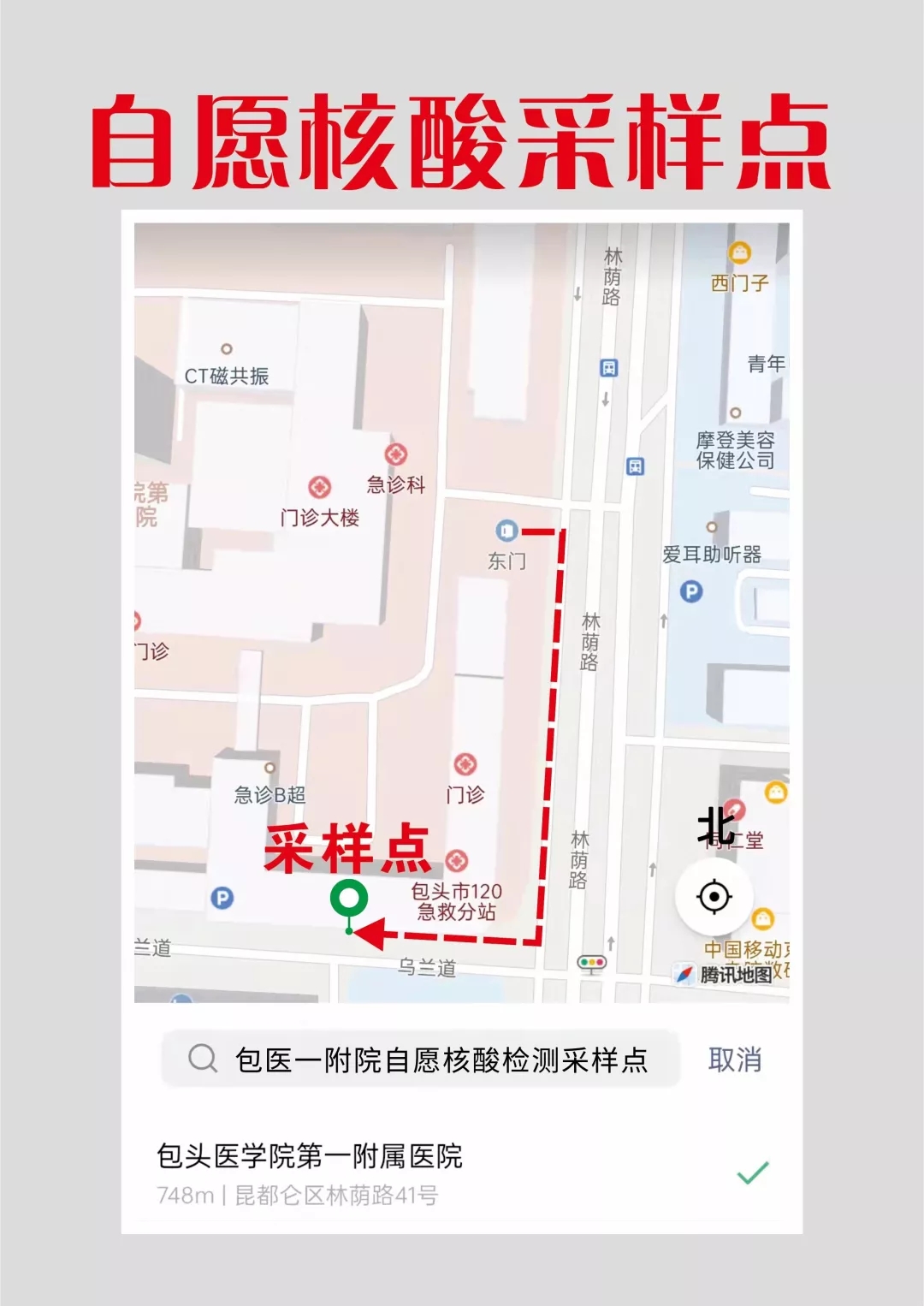 因疫情防控需要,即日起,我院自愿核酸采样点已迁至急诊楼外侧南墙(院外),地址:林荫路与乌兰道交叉口西30米路北;住院患者、陪护人员在院内核酸采样点进行核酸采集。医院将进一步强化防控措施,为群众提供优质、高效的医疗服务。