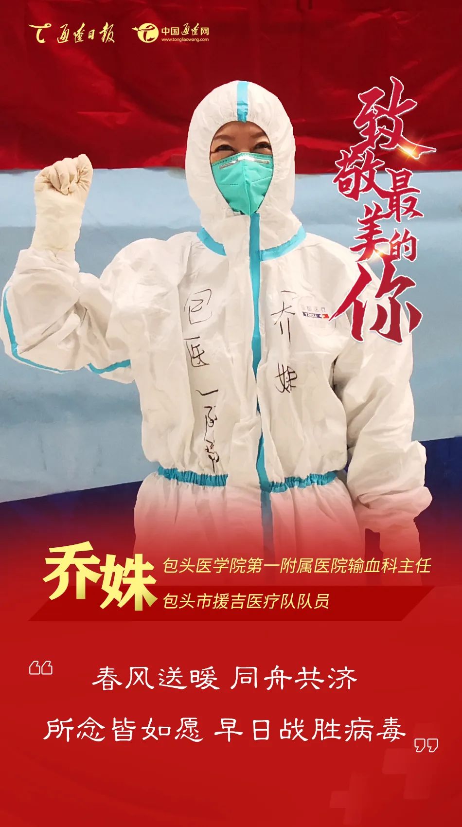 “我是党员,义不容辞。”接到援吉任务时,乔姝顾不得和家人商量,第一时间赶到医院安排科室工作。援吉期间,在方舱工作的每一个日子里,除了完成上万检测量的试剂的配制,还要转战到核酸扩增区进行检测结果的整理审核和数据上报工作。同时深入了解方舱各区域的工作细节,关注关键环节中存在的问题并进行梳理,及时组织召开线上质控会议,优化工作方案,与队友并肩作战的38天里,共完成检测280万人次,为提高检测质量和效率做了大量工作。作为一名具有30年工作经验的老党员,她不辱使命,战斗在抗疫一线,冲锋在前,圆满完成了支援任务,诠释了一名共产党员的初心与使命。