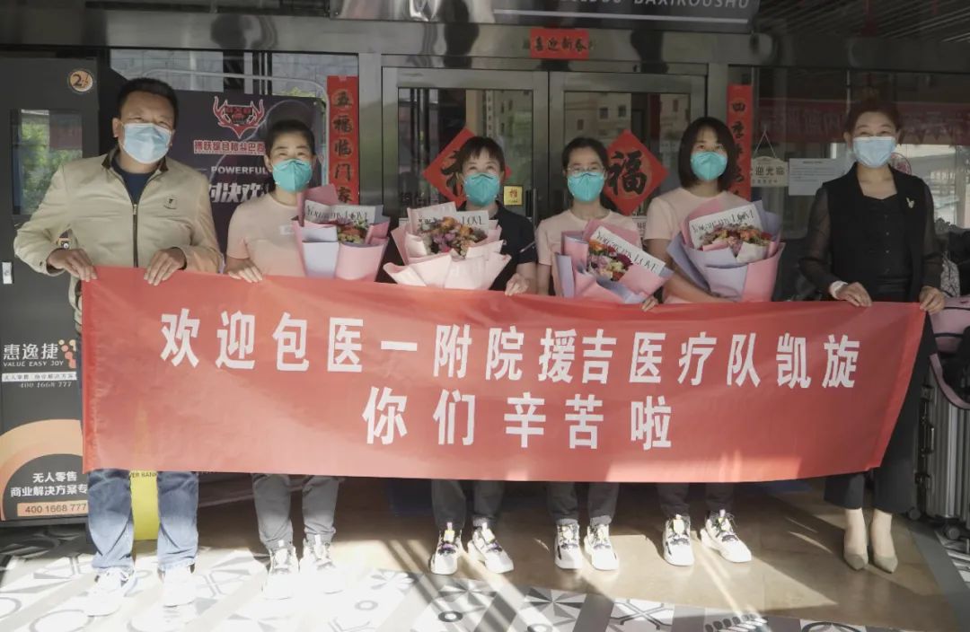 白衣执甲护人民,山河无恙携春归。经过52个日夜的艰苦鏖战,我院派出的9名援吉医疗队员圆满完成各项工作任务,于5月5日凯旋抵包。我院行政职能科室主任同相关临床科室主任为此次支援吉林的9名医疗队员送上鲜花,欢迎医疗队员们回家,并向他们致以崇高敬意。