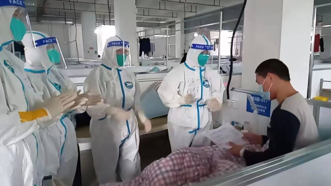 经过马不停蹄的培训、交接和熟悉流程,4月30日上午,医疗队正式进入上海浦东张江方舱医院工作。