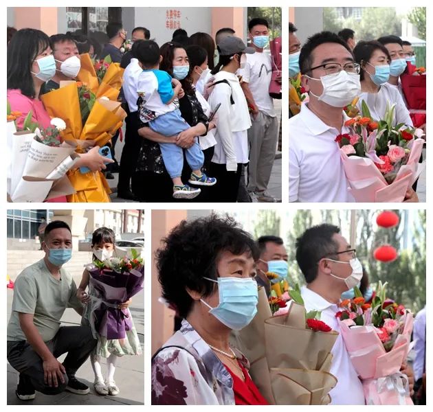 6月9日一大早,包头医学院党委副书记张健、包头医学院宣传部部长李文、包医一附院领导班子成员及援沪医疗队队员的同事、家属们早已等候在隔离酒店外,大家提前为队员们准备好鲜花,以最饱满的热情向队员致以心中的敬意和温暖的问候。