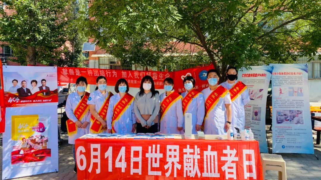 6月14日上午,包医一附院输血科同医院团委走进团16社区开展无偿献血公益宣传活动。